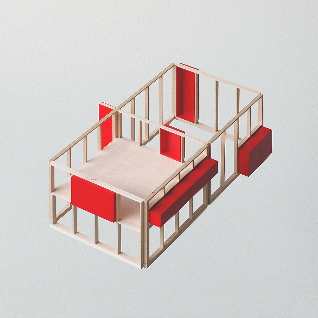 An outbuilding for chickens is organized around moments of collective inhabitation composed on a 2x4 armature. An abstract composition of forms animate each of the coop’s four unique faces, bringing dimensionality and functionality to conventional wood-framed walls. A protected run, elevated henhouse, nesting boxes, roosting bars, and feed & tool storage together form a tableau of a day in the life of a hardworking hen.