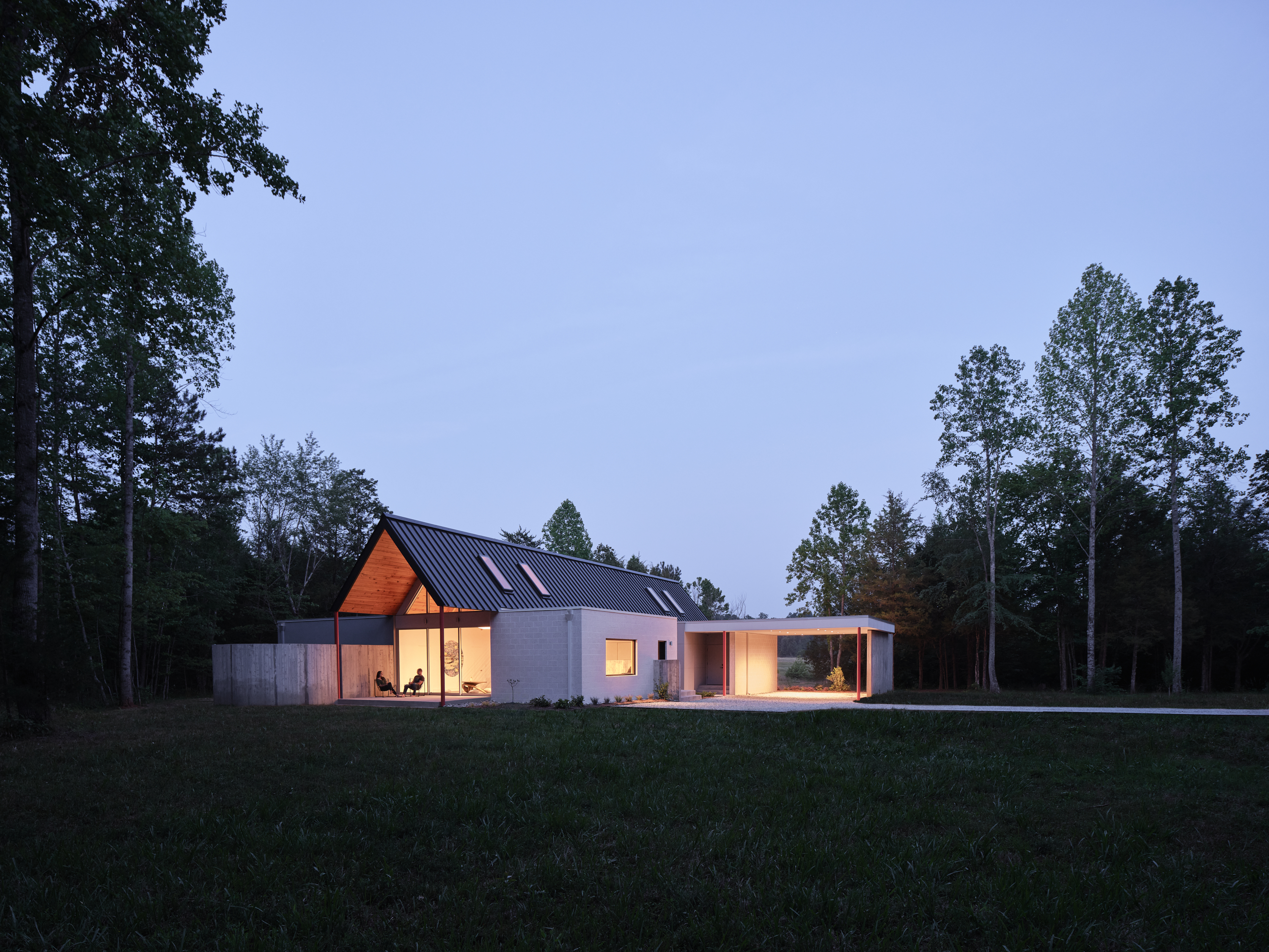 Located in a rural landscape, Dogtrot House adapts historic vernacular into a habitat emphasizing shared spaces for modern living. This single-family house is composed of primitive forms that assemble to frame spaces for gathering amongst moments of repose, expanding domesticity into the outdoors while welcoming light & air within.